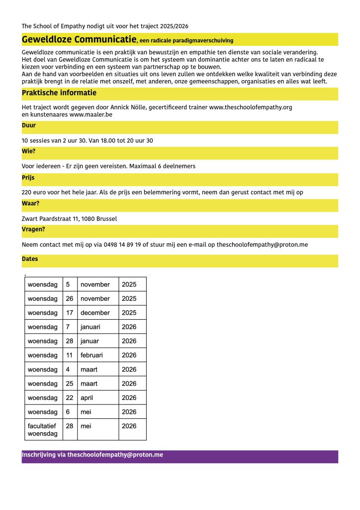 When we engage into a need based dialoog and when over the course of this dialogue we get the needs clear, we open up a field of possible other strategies to fulfill everyone’s needs. In our society we tend to hold on to our strategies. In The School of Empathy we are tenacious to our needs and flexible in our strategies. The form a fulfilled need takes in the material world is secondary. We prioritize the connection we make with others and we do that on the need level, which is to my knowledge the closest we come verbally to the universal energie that connects us all.